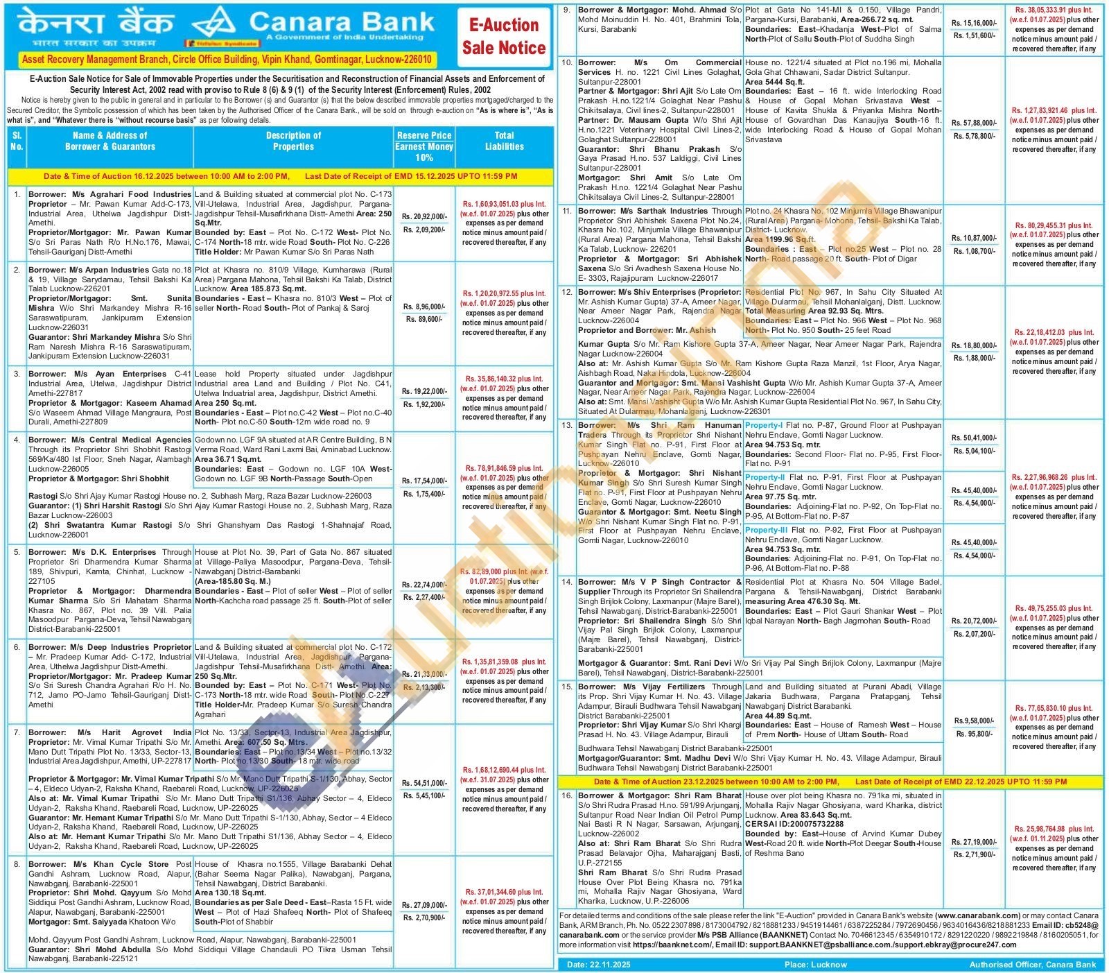 Contact No : 05222307898/8173004792/8218881233/9451914461/6387225284/7972690456/9634016436/8218881233 Email ID: cb5248@ canarabank.com