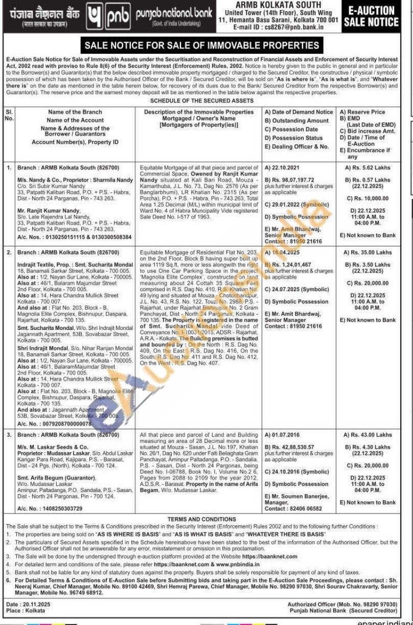 2) Equitable Mortgage of Residential Flat No. 203. on the 2nd Floor, Block B having super built up area 1119 Sq. ft. more or less alongwith the right to use One Car Parking Space in the project Magnolia Elite Complex, constructed on land measuring about 24 Cottah 35 Square Feet comprised in R.S. Dag No. 410, RS. Khatian No 49 lying and situated at Mouza-Chotochandpur, J.L. No. 43. R.S. No. 122, Touzi No. 2988, P.S. Rajarhat, under Rajarhat Bishnupur No. 2 Gram Panchayat, Dist-North 24 Parganas, Kolkata-700 135. The Property is registered in the name of Smt. Sucharita Mondal vide Deed of Conveyance No. 1-10031/2015, ADSR-Rajarhat ARA-Kolkata. The Building premises is butted and bounded by: On the North: RS. Dag No. 409, On the East: R.S. Dag No. 416, On the South: R.S. Dag No. 411 and R.S. Dag No. 412 On the West: R.S. Dag No. 407