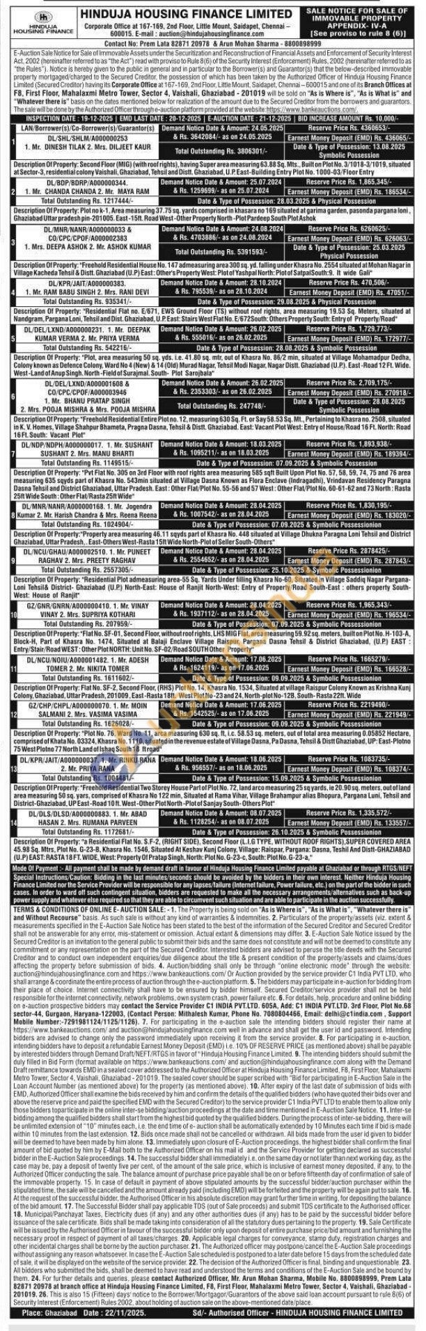 Description Of Property: "Freehold Residential Entire Plot no. 12, measuring 630 Sq. Ft. or Say 58.53 Sq. Mt., Pertaining to Khasra no. 2508, situated in K. V. Homes, Village Shahpur Bhameta, Pragna Dasna, Tehsil & Distt. Ghaziabad. East: Vacant Plot West: Entry of House/Road 16 Ft. North: Road 16 Ft. South: Vacant Plot"
