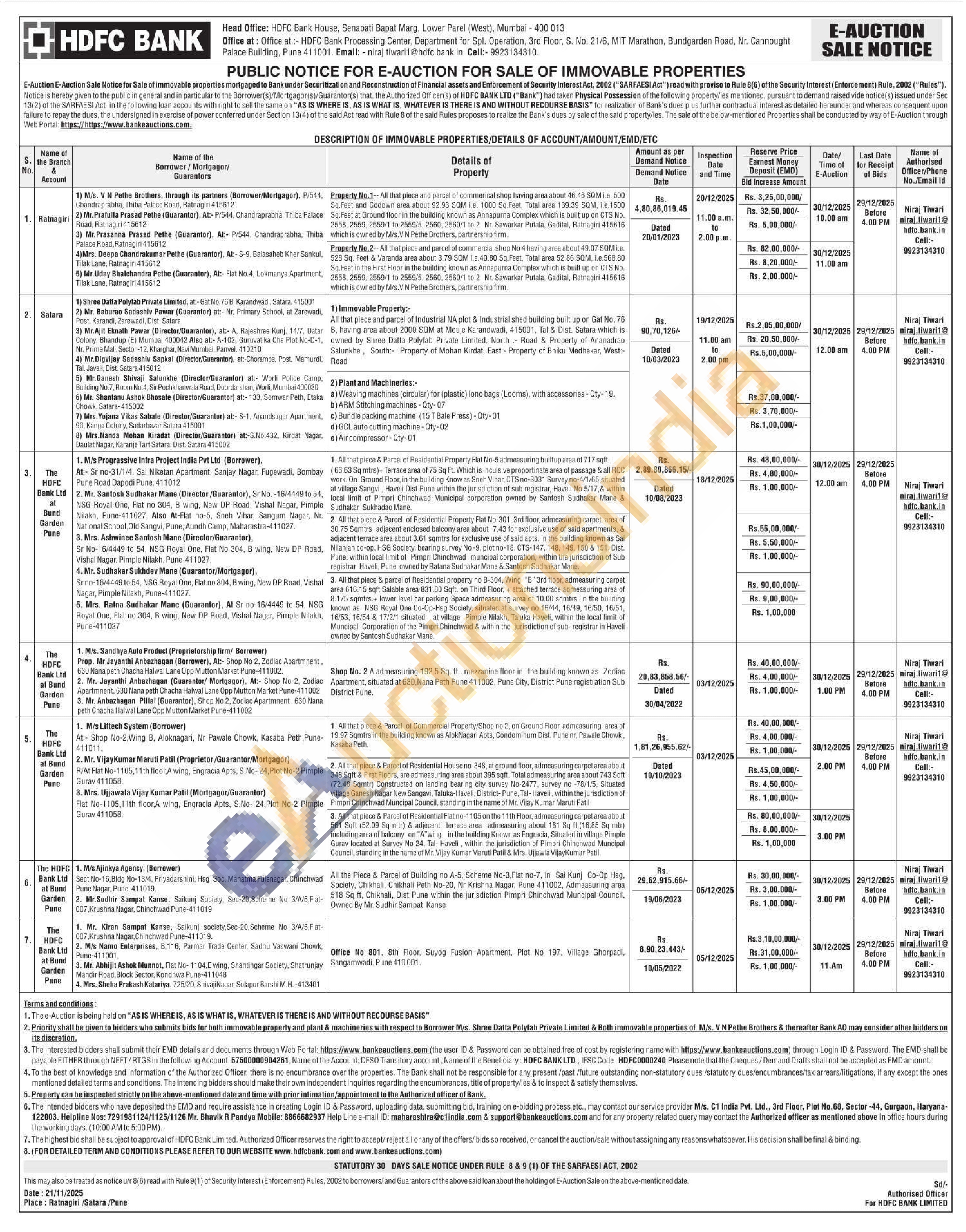 Property No.2--All that piece and parcel of commercial shop No 4 having area about 49.07 SQM i.e. 528 Sq. Feet & Varanda area about 3.79 SQM Le.40.80 Sq. Feet, Total area 52.86 SQM, i.e.568.80 Sq. Feet in the First Floor in the building known as Annapurna Complex which is built up on CTS No. 2558, 2559, 2559/1 to 2559/5, 2560, 2560/1 to 2 Nr. Sawarkar Putala, Gadital, Ratnagiri 415616 which is owned by M/s.VN Pethe Brothers, partnership firm.
