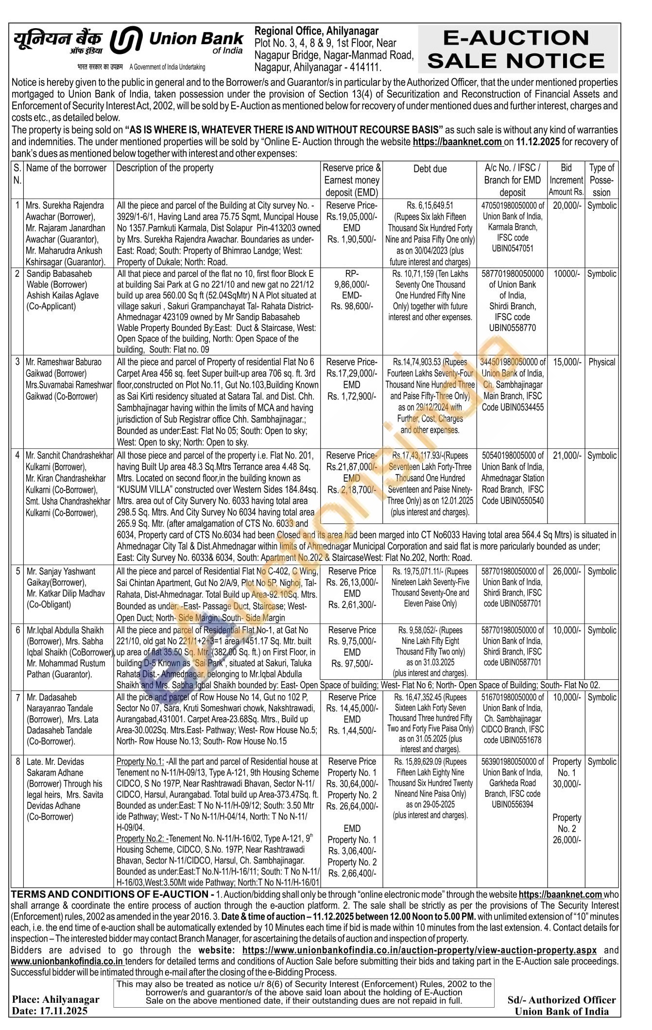 All the piece and parcel of Property of residential Flat No 6 Carpet Area 456 sq. feet Super built-up area 706 sq. ft. 3rd floor,constructed on Plot No.11, Gut No. 103, Building Known as Sai Kirti residency situated at Satara Tal. and Dist. Chh. Sambhajinagar having within the limits of MCA and having jurisdiction of Sub Registrar office Chh. Sambhajinagar.; Bounded as under:East: Flat No 05; South: Open to sky; West: Open to sky; North: Open to sky.