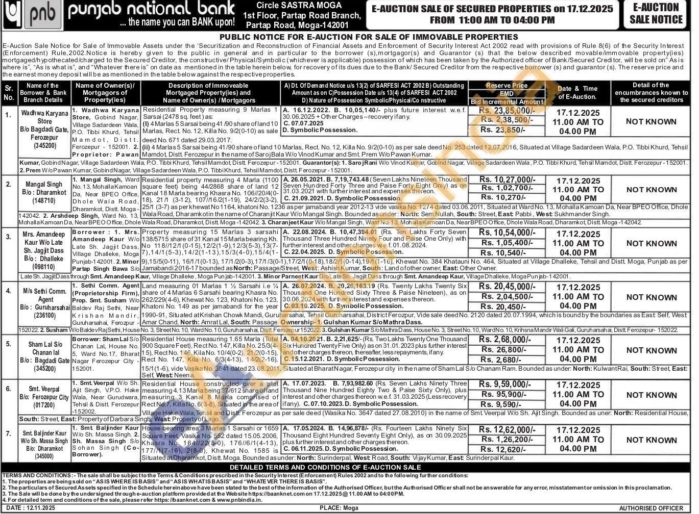 House bearing area 3 Marlas 1 Sarsahi or 1659 Square Feet, Vasika No. 552 dated 15.05. 2006, Khasra No. 164//22(8-0), 176/6/1(4-13),177//1(7-16), 2(8-0), Khewat No. 1585 is Situated at Dharamkot, Distt. Moga. Bounded as under: North: Surinderpal, West Road, South: Vijay Kumar, East Surinderpal Kaur.
