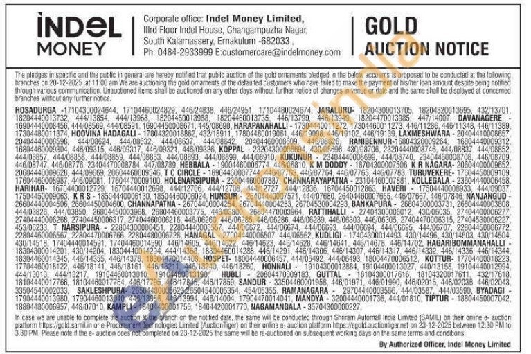 Indel money ltd Gold Auctions Auction in Ernakulam