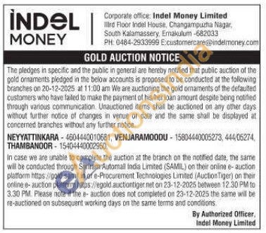 Indel money ltd Gold Auctions Auction in Ernakulam