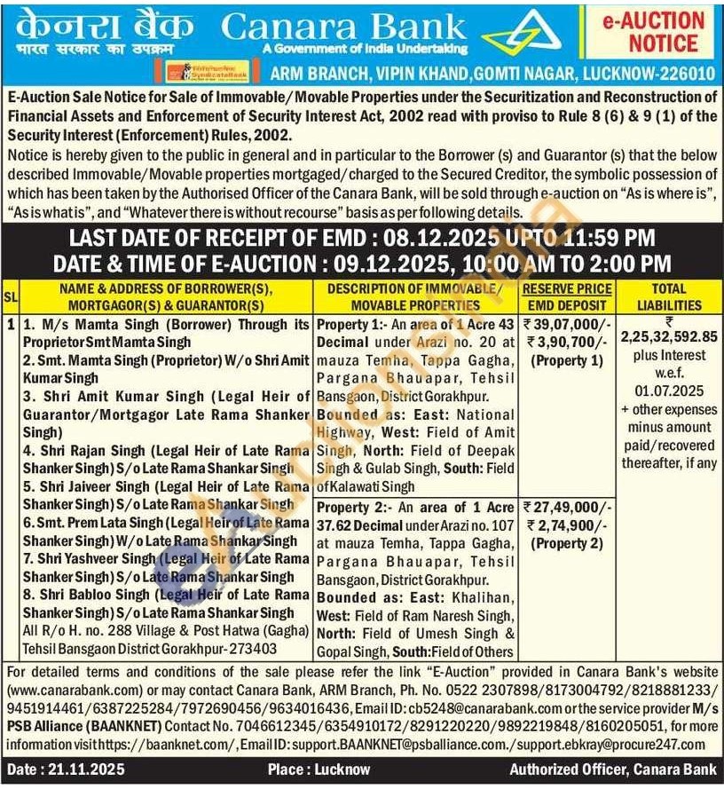 Property 2: An area of 1 Acre 37.62 Decimal under Arazi no. 107 at mauza Temha, Tappa Gagha, Pargana Bhauapar, Tehsil Bansgaon, District Gorakhpur.