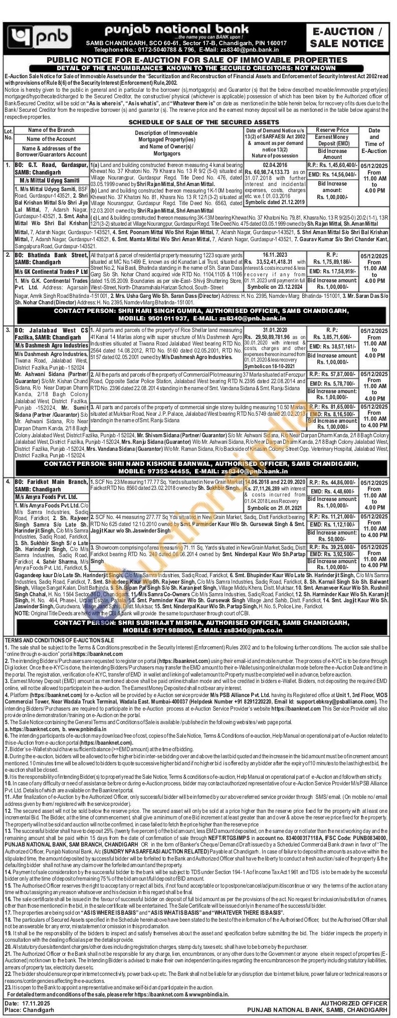 All the parts and parcels of the property of Commercial Plotmeasuring 37 Marla situated at Ferozpur Chand Road, Opposite Sadar Police Station, Jalalabad West bearing RTD N.2395 dated 22.08.2014 and Dharm RTD No. 2396 dated 22.08.201