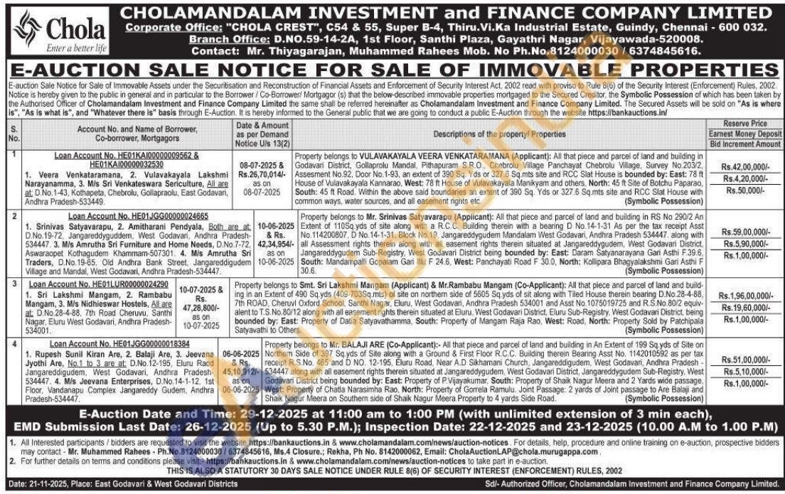 Property belongs to VULAVAKAYALA VEERA VENKATARAMANA (Applicant): All that piece and parcel of land and building in Godavari District, Gollaprolu Mandal, Pithapuram S.R.O. Chebrolu Village Panchayat Chebrolu Village, Survey No.203/2 Assesment No.92. Door No.1-93, an extent of 390 Sq. Yds or 327.6 Sq.mts site and RCC Slat House is bounded by: East: 78ft House of Vulavakayala Kannarao, West: 78 ft House of Vulavakayala Manikyam and others. North: 45 ft Site of Botchu Paparao, South: 45 ft Road. Within the above said boundaries an extent of 390 Sq. Yds or 327.6 Sqmts site and RCC Slat House with common ways, water sources, and all easement rights etc