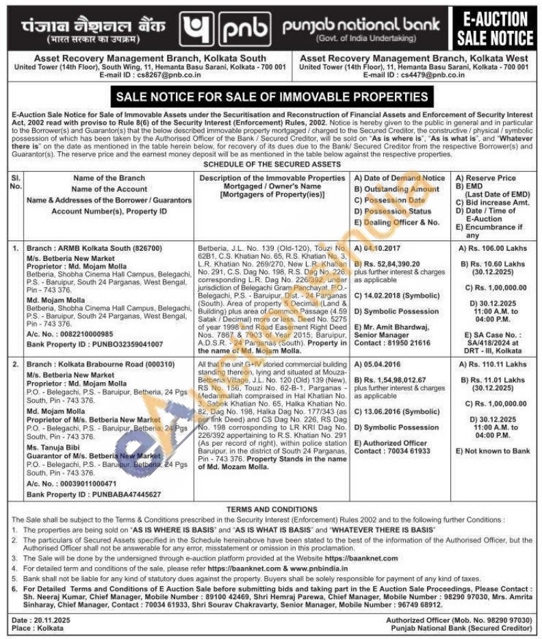 Betberia, J.L. No. 139 (Old-120), Touzi No. 6281, C.S. Khatian No. 65, R.S. Khatian No. 3, L.R. Khatian No. 269/270, New L.R. Khatian No. 291, C.S. Dag No. 198, R.S. Dag No. 226, corresponding L.R. Dag No. 226/392, under jurisdiction of Belegachi Gram Panchayat, P.O.-Belegachi, P.S. Baruipur, Dist.-24 Parganas (South). Area of property 5 Decimal (Land & Building) plus area of Common Passage (4.59 Satak/Decimal) more or less. Deed No. 5275 of year 1998 and Road Easement Right Deed Nos. 7867 & 7903 of Year 2015, Baruipur, A.D.S.R. 24 Parganas (South). Property in the name of Md. Mojam Molla