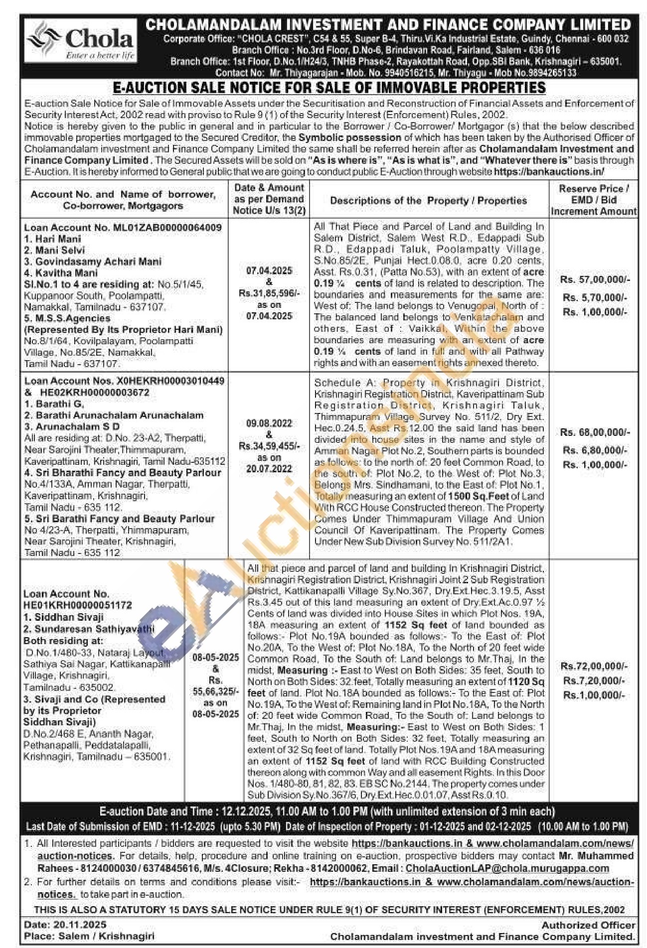 All That Piece and Parcel of Land and Building In Salem District, Salem West R.D., Edappadi Sub R.D., Edappadi Taluk, Poolampatty Village. S.No. 85/2E, Punjai Hect.0.08.0, acre 0.20 cents, Asst. Rs. 0.31, (Patta No.53), with an extent of acre 0.19% cents of tand is related to description. The boundaries and measurements for the same are: West of: The land belongs to Venugopal, North of The balanced land belongs to Venkatachalam and others, East of Vaikkal, Within the above boundaries are measuring with an extent of acre 0.19 % cents of land in full and with all Pathway rights and with an easement rights annexed thereto.
