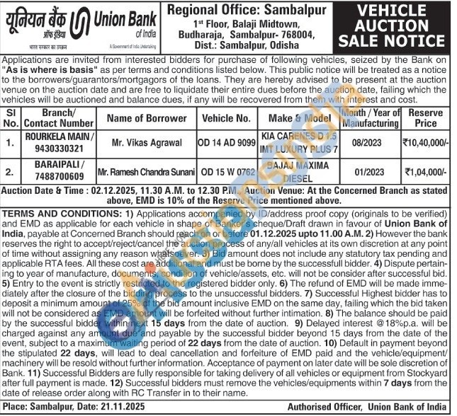 Vehicle No. ; OD 14 AD 9099