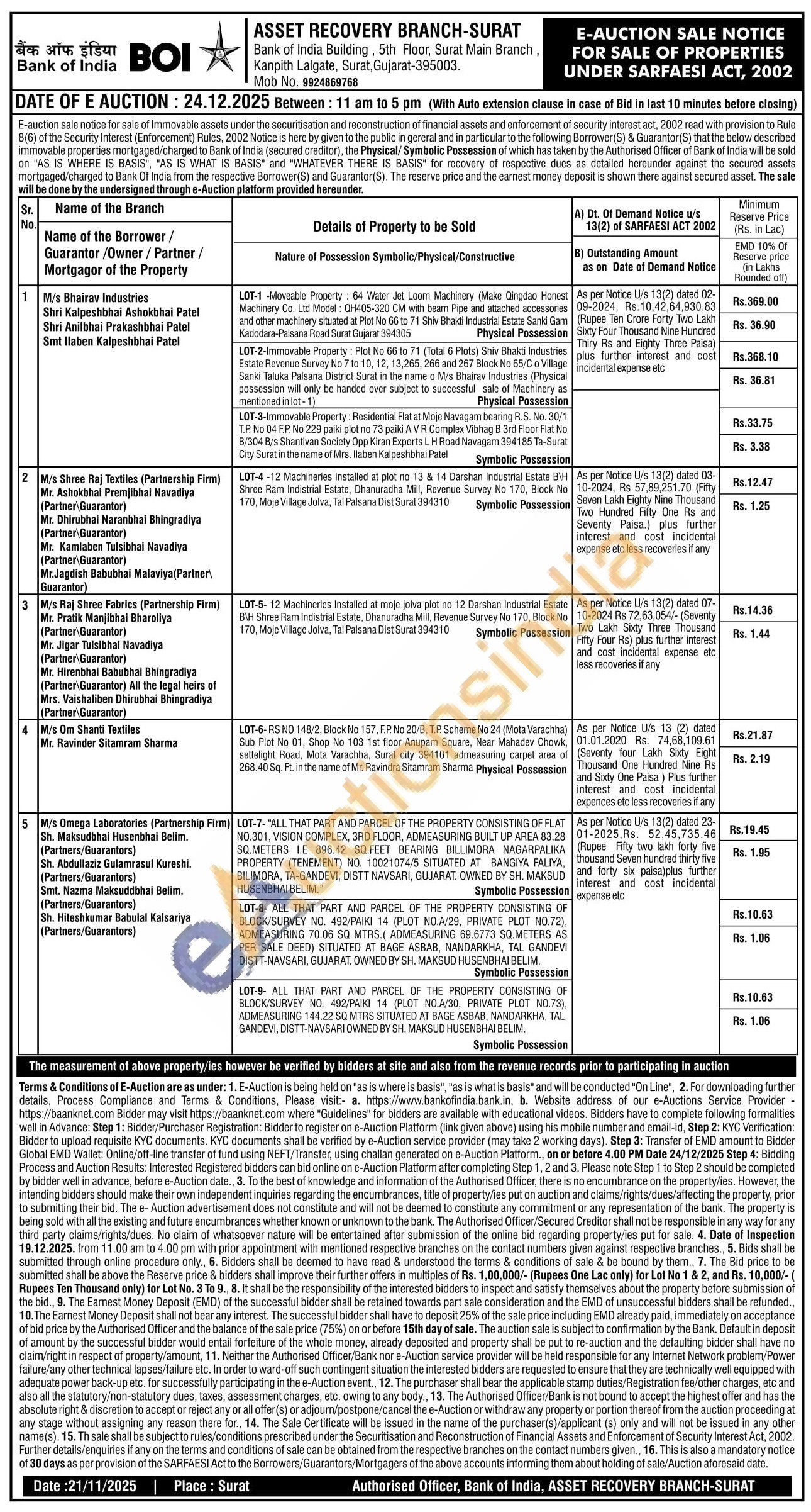 LOT-1 -Moveable Property: 64 Water Jet Loom Machinery (Make Qingdao Honest Machinery Co. Ltd Model: QH405-320 CM with beam Pipe and attached accessories and other machinery situated at Plot No 66 to 71 Shiv Bhakti Industrial Estate Sanki Gam Kadodara-Palsana Road Surat Gujarat 394305