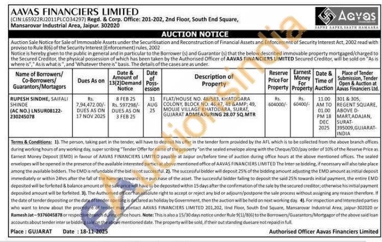 FLAT/HOUSE NO. 48/583, KHATODARA COLONY, BLOCK NO. 46,47, 48 & 49, MOUJE VILLAGE KHATODARA, SURAT, GUJARAT ADMEASURING 28.07 SQ.MTR