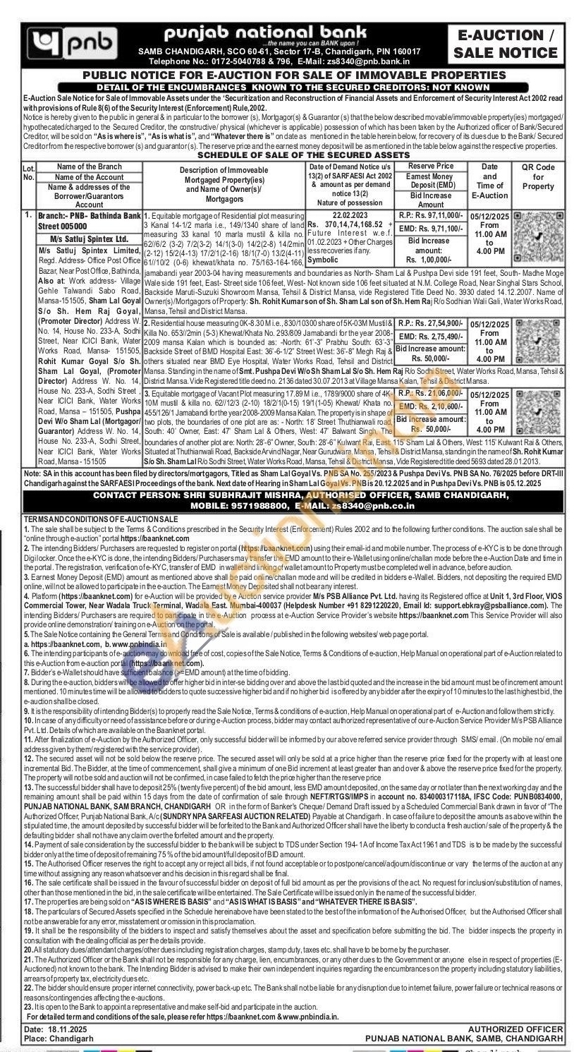 Equitable mortgage of Vacant Plot measuring 17.89 M ie., 1789/9000 share of 4k 10M mustil & killa no. 62/12/3 (2-10) 18/2/1(0-15) 19/1(1-05) Khewat/ Khata no 455/126/1 Jamabandi for the year 2008-2009 Mansa Kalan. The property is in shape of two plots, the boundaries of one plot are as: - North: 18 Street Thuthianwali road South: 40' Owner, East: 47 Sham Lal & Others, West: 47 Balwant Singh, The boundaries of another plot are: North: 28-6" Owner, South: 28-6" Kulwant Rai, East 115' Sham Lal & Others, West: 115 Kulwant Rai & Others, Situated at Thuthianwali Road, Backside Arvind Nagar, Near Gurudwara, Mansa, Tehsil & District Mansa, standingin the name of Sh. Rohit Kumar S/o Sh. Sham Lal Rio Sodhi Street, Water Works Road, Mansa, Tehsil & District Mansa, Vide Registered title deed 5693 dated 28.01.2013