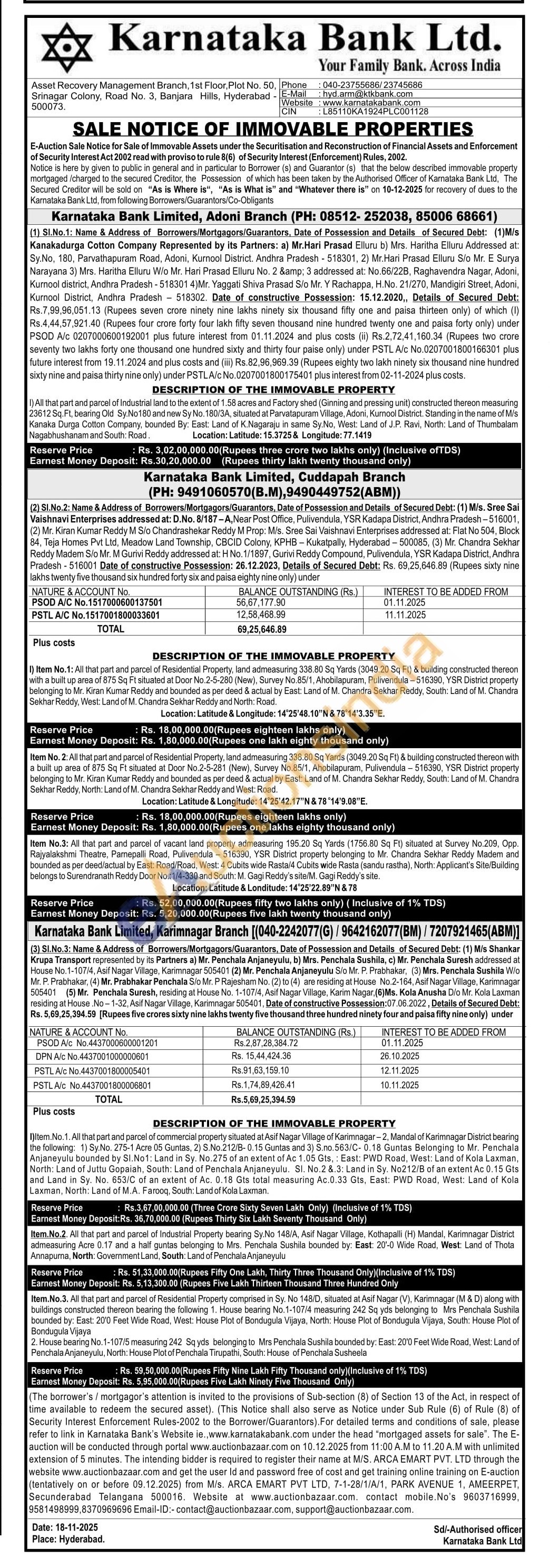Item No.3: All that part and parcel of vacant land property admeasuring 195.20 Sq Yards (1756.80 Sq Ft) situated at Survey No.209, Opp. Rajyalakshmi Theatre, Parnepalli Road, Pulivendula 516390, YSR District property belonging to Mr. Chandra Sekhar Reddy Madem and bounded as per deed/actual by East: Road/Road, West: 4 Cubits wide Rasta/4 Cubits wide Rasta (sandu rastha), North: Applicant's Site/Building belongs to Surendranath Reddy Door No.: 1/4-330 and South: M. Gagi Reddy's site/M. Gagi Reddy's site.