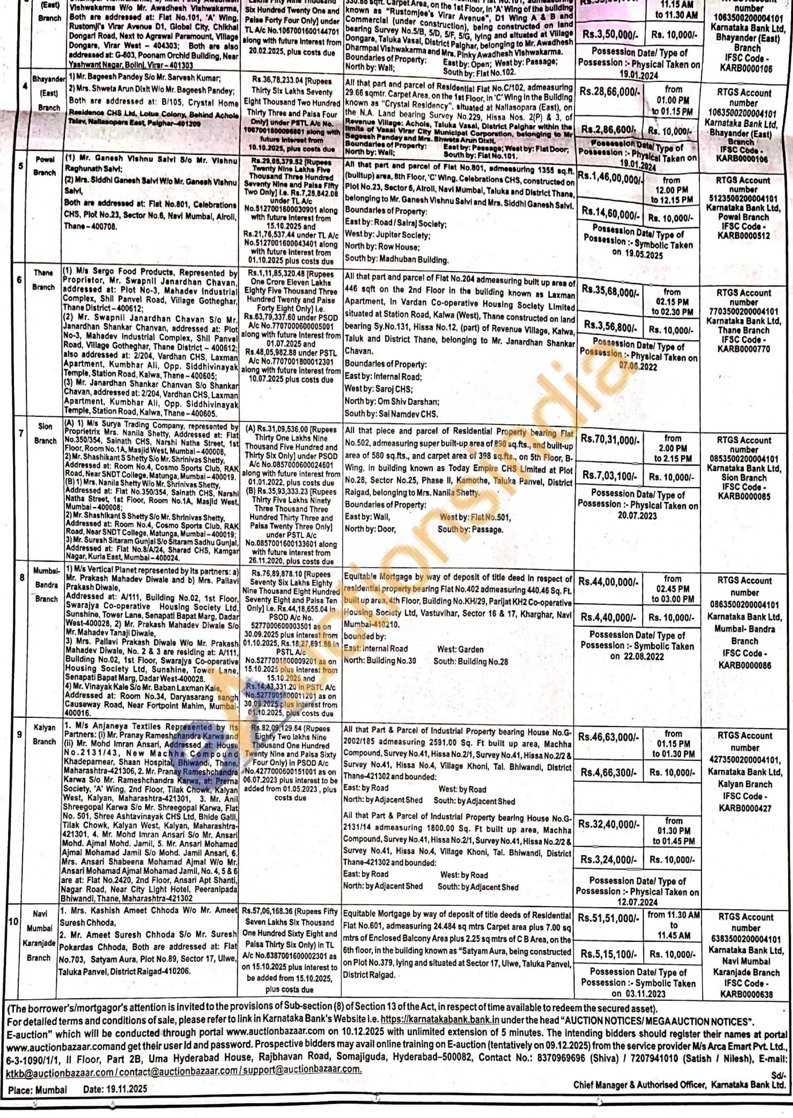 Equitable Mortgage by way of deposit of title deed in respect of residential property bearing Flat No.402 admeasuring 440.46 Sq. FL built up area, 4th Floor, Building No.KH/29, Parijat KH2 Co-operative Housing Society Ltd, Vastuvihar, Sector 16 & 17, Kharghar, Navi Mumbai-410210. bounded by: East: Internal Road West: Garden South: Building No.28 North: Building No.30