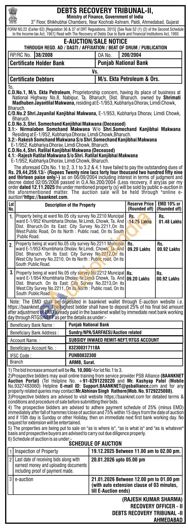 Property being at ward No.05 city survey No.2211 Muncipal ward E-1/953 Khumbharia Dholav, Nr. Limdi, Chowk, Ta. And Dist. Bharuch. On its East: City Survey No.2212,0n its West: City Survey No.2210, On its North: Public road, On its South: Public Road.