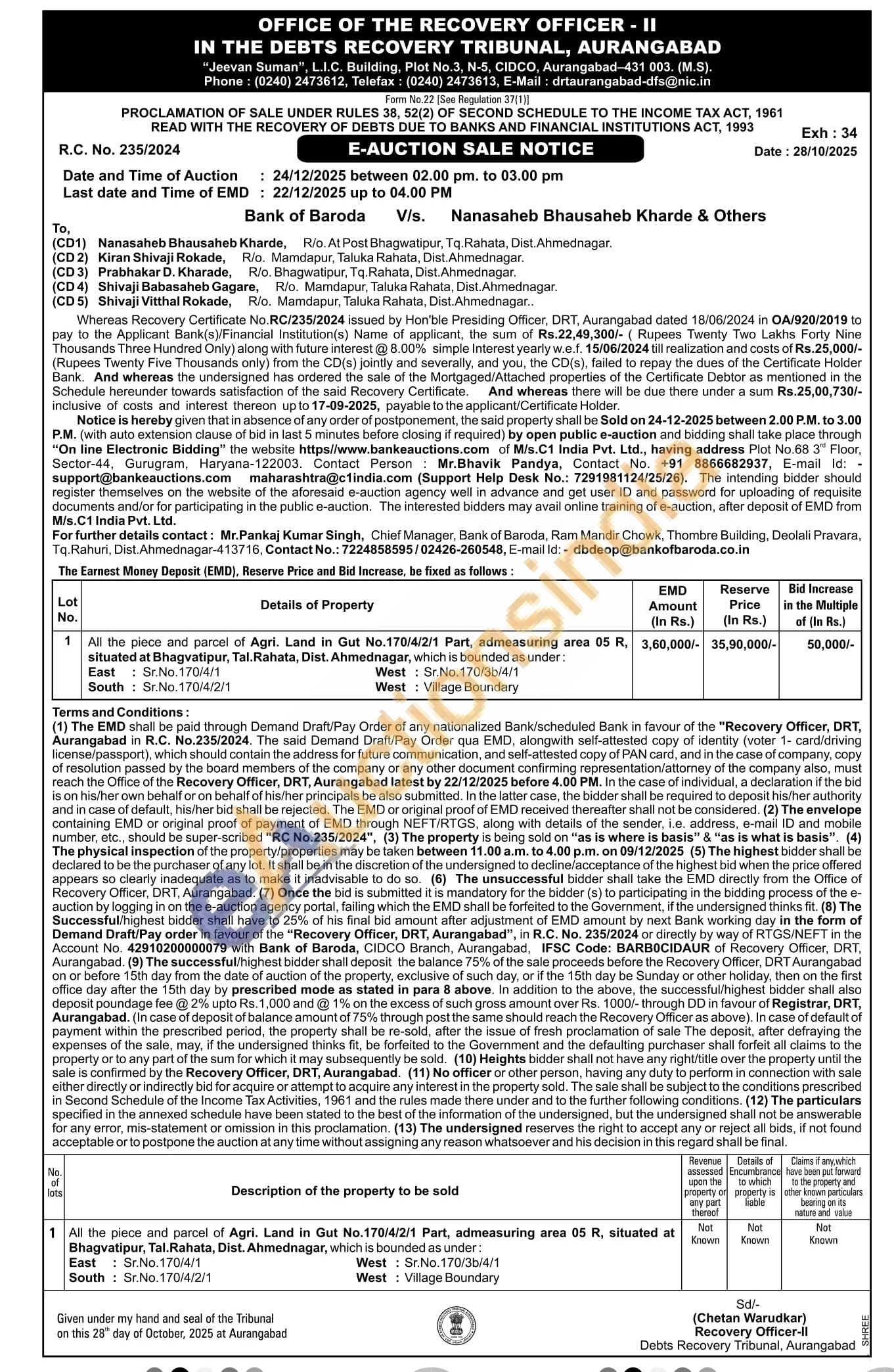 All the piece and parcel of Agri. Land in Gut No.170/4/2/1 Part, admeasuring area 05 R. situated at Bhagvatipur, Tal. Rahata, Dist. Ahmednagar, which is bounded as under East: Sr.No. 170/4/1 South West Sr.No. 170/36/4/1 Sr.No. 170/4/2/1 West: Village Boundary