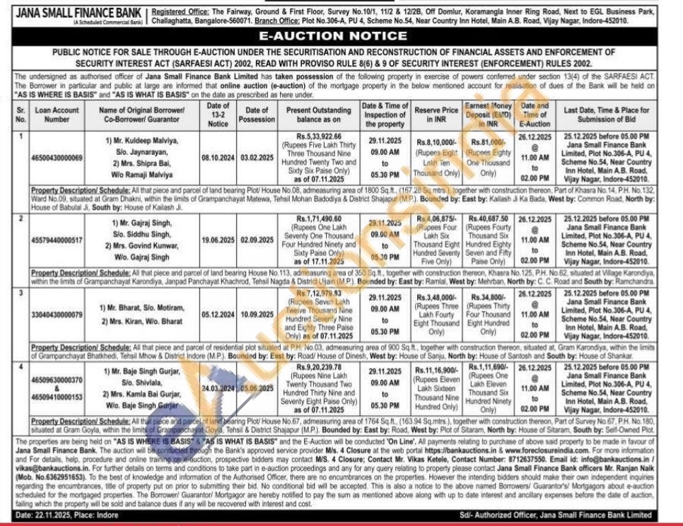 Property Description/Schedule: All that piece and parcel of land bearing Plot/ House No.67, admeasuring area of 1764 Sq.ft. (163.94 Sq.mtrs), together with construction thereon, Part of Survey No 67, PH. No. 180, situated at Gram Goyla, within the limits of Grampanchayat Goyla, Tehsil & District Shajapur (M.P.) Bounded by: East by: Road, West by: Plot of Sitaram, North by: House of Sitaram, South by: Self-Owned Plot