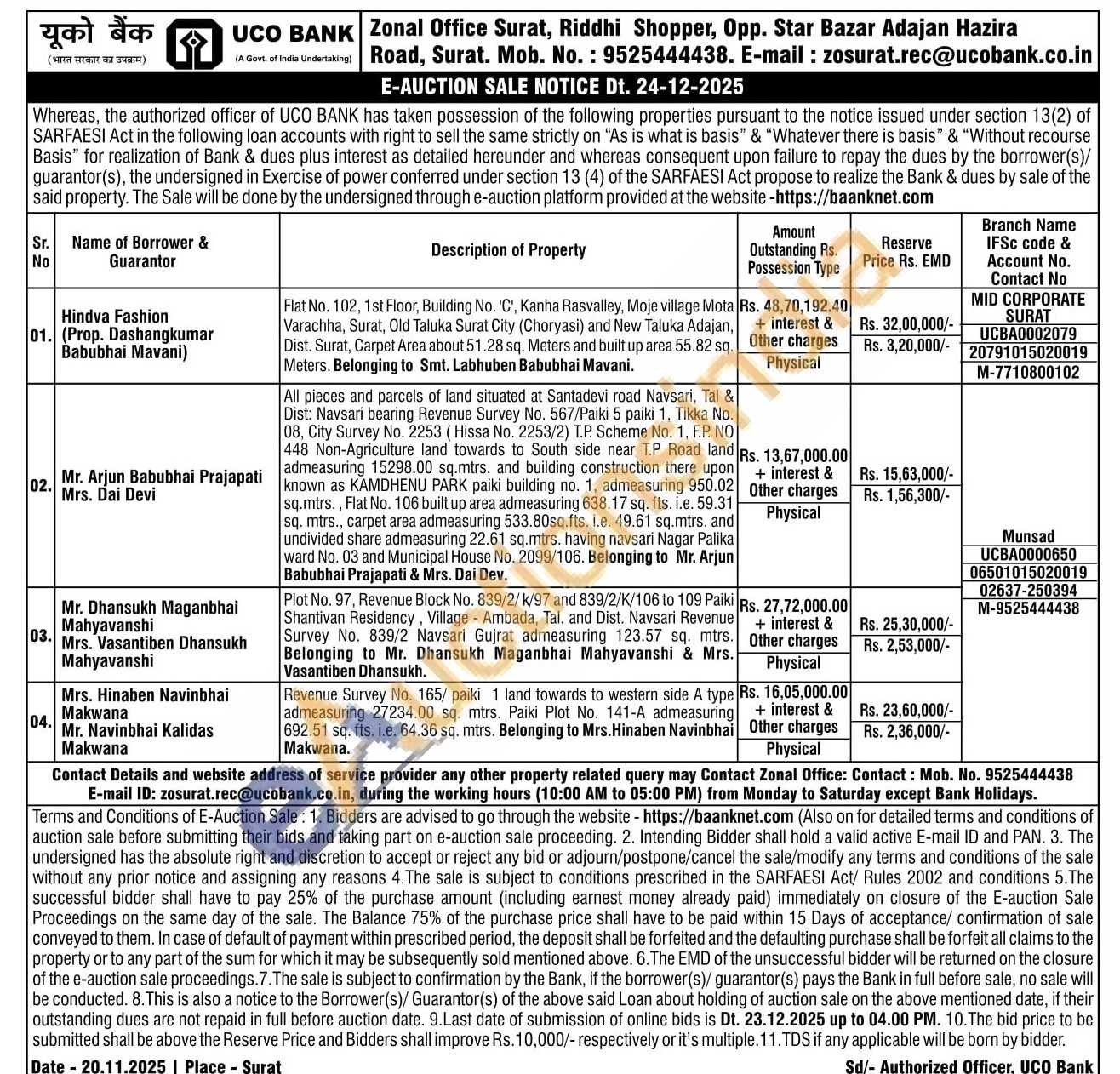 Plot No. 97, Revenue Block No. 839/2/k/97 and 839/2/K/106 to 109 Paiki Shantivan Residency, Village Ambada, Tal. and Dist. Navsari Revenue Survey No. 839/2 Navsari Gujrat admeasuring 123.57 sq. mtrs. Belonging to Mr. Dhansukh Maganbhai Mahyavanshi & Mrs. Vasantiben Dhansukh.