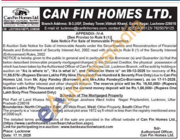 Plot Part of Land Khasra No. 243(SA) Village Jarahara Ward Indira Nagar Priydarshini, Lucknow, Uttar Pradesh-226016