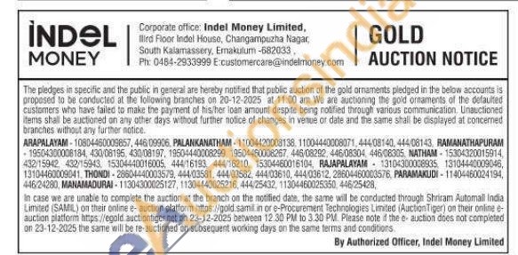 Indel money ltd Gold Auctions Auction in Ernakulam