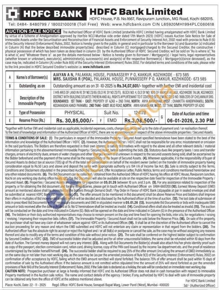 7.449 ARES OF LAND IN RE SY NO 23/65 (OLD RE SY NO 23/TI), BLOCK NO: 4, OLD SY NO: 10/6 OF KAKKUR VILLAGE, KOZHIKODE TALUK, KOZHIKODE DISTRICT WITH BUILDING SITUATES THEREIN AND ALL RIGHTS APPURTENANT TO IT COVERED SETTLEMENT DEED NO. 1666/2015 OF CHELANNUR SHO. BOUNDARIES: IST THAK EAST: PROPERTY OF AZAD 2ND THAK, NORTH: ANYA KAIVASHAM, WEST: CHAKKITTA KANDIPARAMBU, SOUTH: KODAKKADAN KANDI PARAMBU. 2ND THAK-EAST: MUD ROAD, NORTH: ANYA KAIVASHAM, WEST: IST THAK, SOUTH: PROPERTY OF AZAD