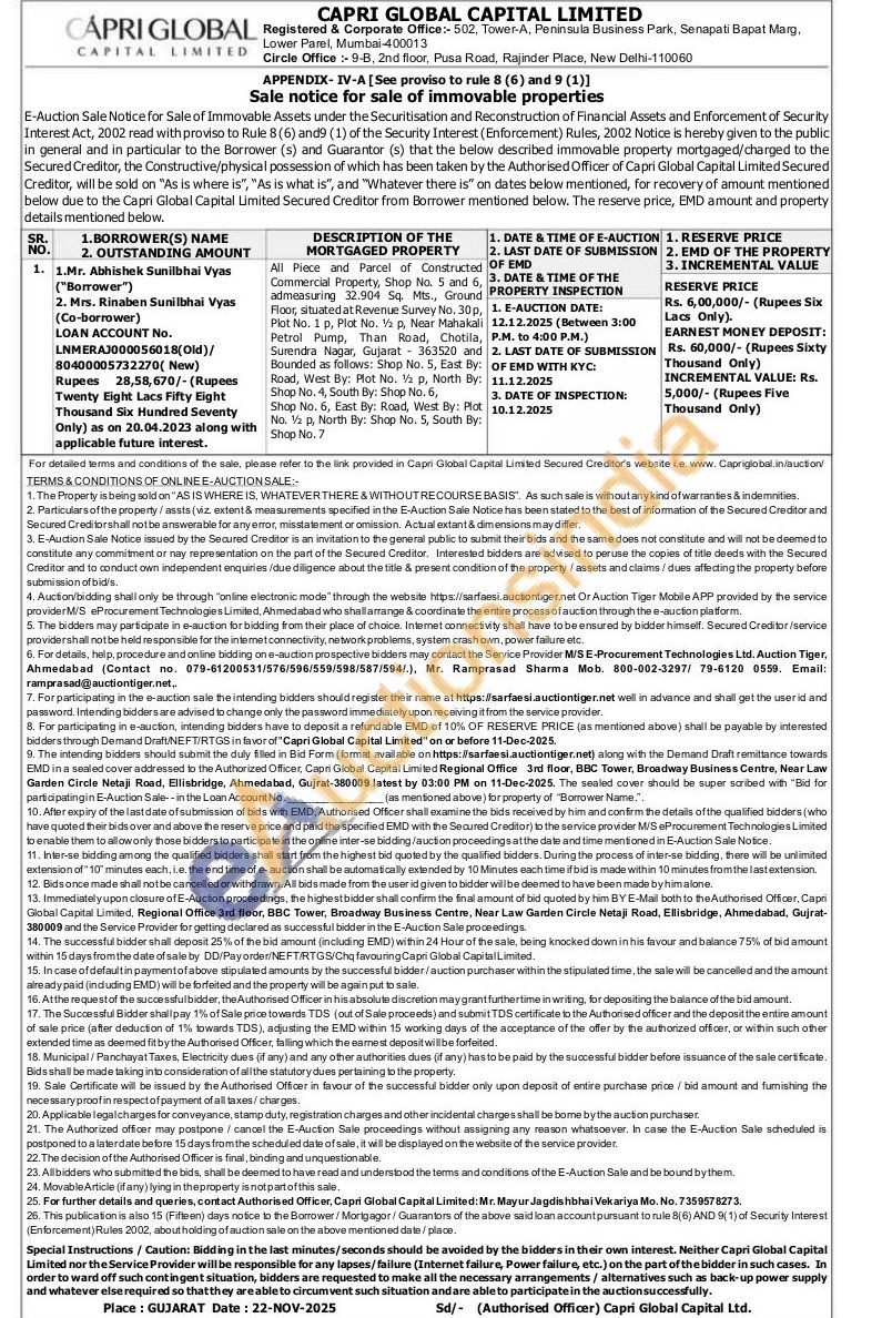 All Piece and Parcel of Constructed Commercial Property, Shop No. 5 and 6, admeasuring 32.904 Sq. Mts., Ground Floor, situated at Revenue Survey No. 30p, Plot No. 1 p, Pict No. Va p, Near Mahakali Petrol Pump, Than Road, Chotila, Surendra Nagar, Gujarat 363520 and Bounded as follows: Shop No. 5, East By: Road, West By: Plot No. 1½ p, North By: Shop No. 4, South By: Shop No. 6, Shop No. 6, East By: Road, West By: Plot No. V p, North By: Shop No. 5, South By: Shop No. 7
