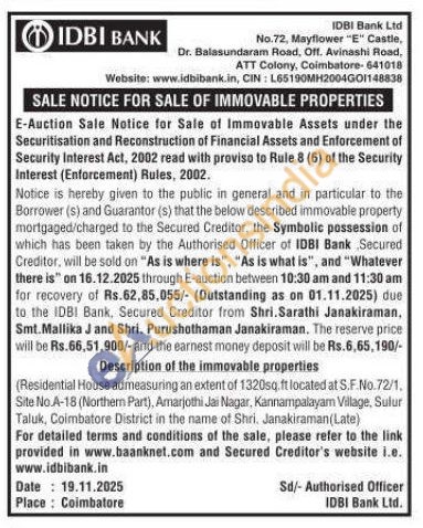 Residential House admeasuring an extent of 1320sq.ft located at S.F.No. 72/1. Site No.A-18 (Northem Part), Amarjothi Jai Nagar, Kannampalayam Village, Sulur Taluk, Coimbatore District