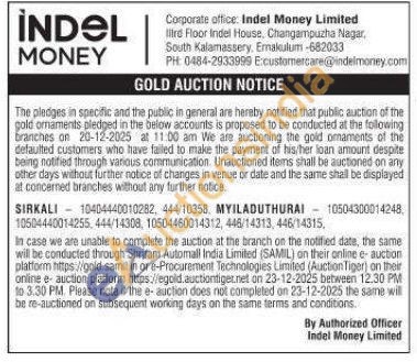 Indel money ltd Gold Auctions Auction in Ernakulam