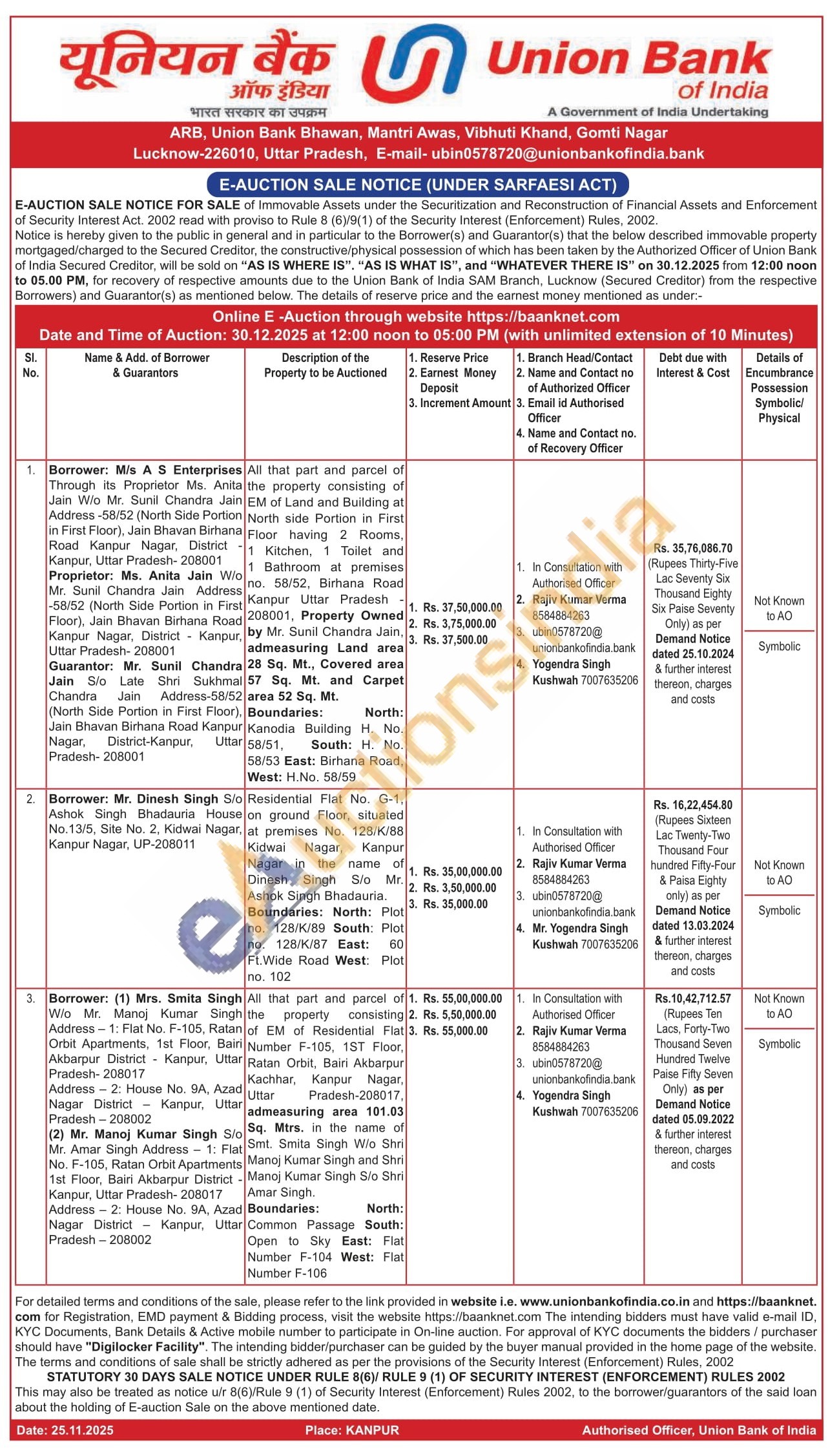 Contact Authorised Officer Rajiv Kumar Verma 8584884263 /Mr. Yogendra Singh Kushwah 7007635206