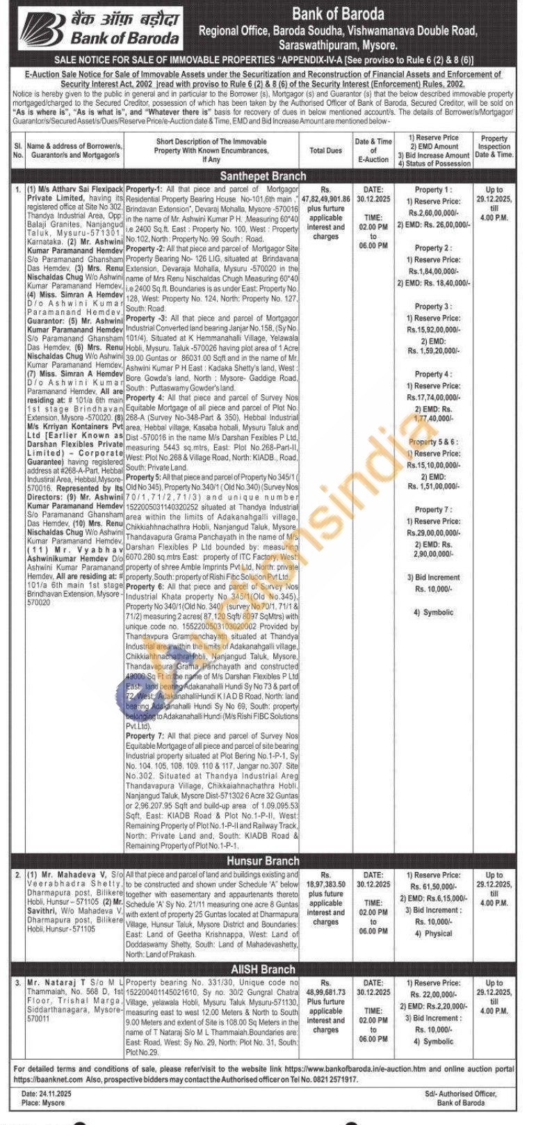 Property -3: All that piece and parcel of Mortgagor Industrial Converted land bearing Janjar No. 158, (Sy No. 101/4), Situated at K Hemmanahalli Village, Yelawala Hobli, Mysuru. Taluk-570026 having plot area of 1 Acre 39.00 Guntas or 86031.00 Sqft and in the name of Mr. Ashwini Kumar PH East: Kadaka Shetty's land, West: Bore Gowda's land, North Mysore- Gaddige Road. South: Puttaswamy Gowder's land.