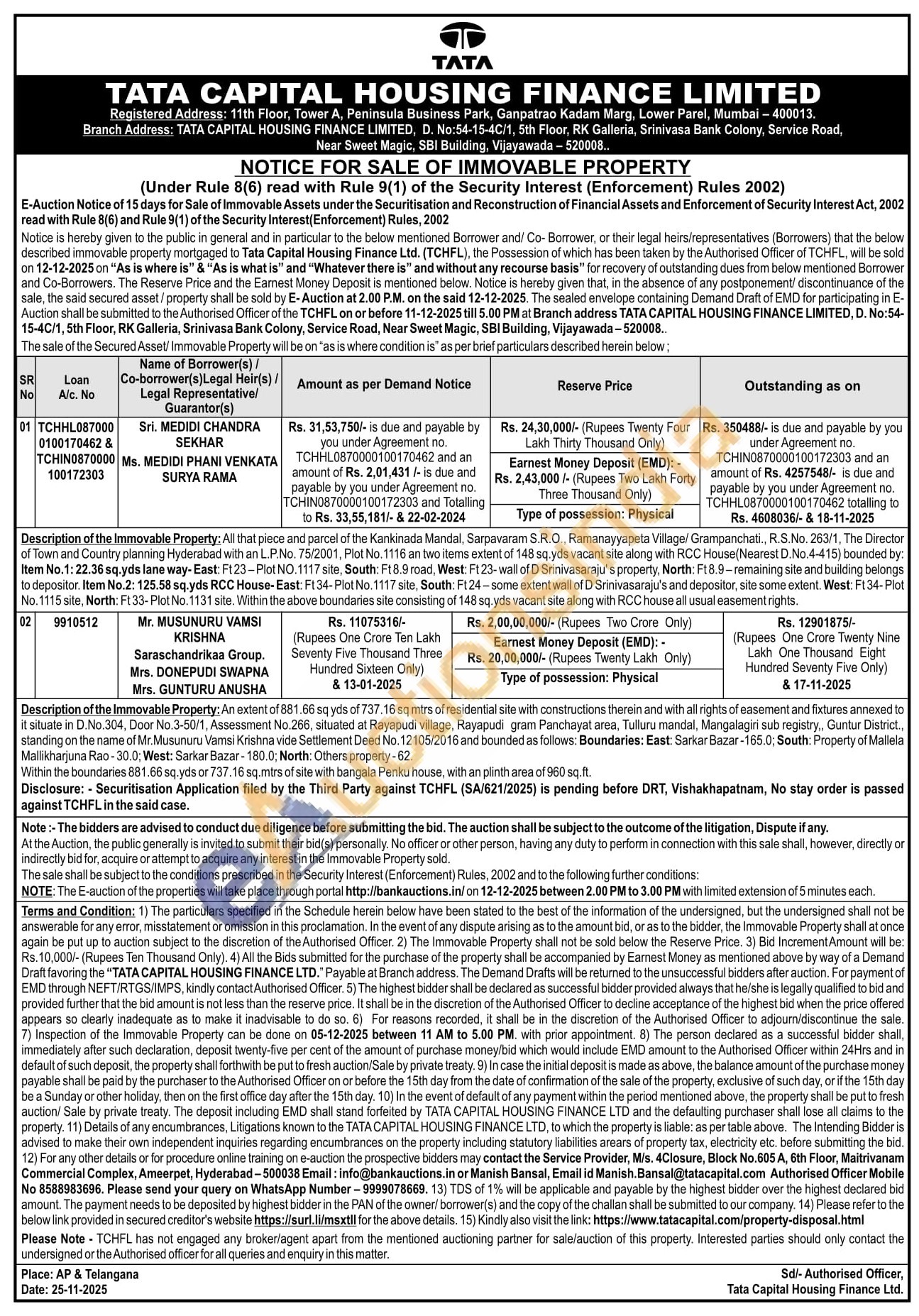 All that piece and parcel of the Kankinada Mandal, Sarpavaram S.R.O., Ramanayyapeta Village/Grampanchati., R.S.No. 263/1, The Director of Town and Country planning Hyderabad with an L.P.No. 75/2001, Plot No. 1116 an two items extent of 148 sq.yds vacant site along with RCC House (Nearest D.No.4-415) bounded by: Item No.1: 22.36 sq.yds lane way-East: Ft23-Plot NO.1117 site, South: Ft8.9 road, West: Ft 23-wall of D Srinivasaraju's property, North: F18.9-remaining site and building belongs to depositor. Item No.2: 125.58 sq.yds RCC House-East: Ft34-Plot No. 1117 site, South: Ft24-some extent wall of D Srinivasaraju's and depositor, site some extent. West: Ft34-Plot No. 1115 site, North: Ft 33-Plot No. 1131 site. Within the above boundaries site consisting of 148 sq. yds vacant site along with RCC house all usual easement rights