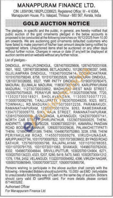 Manappuram Finance Ltd Gold Auctions Auction in Thrissur