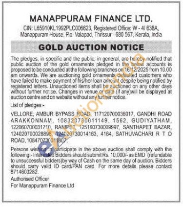 Manappuram Finance Ltd Gold Auctions Auction in Thrissur