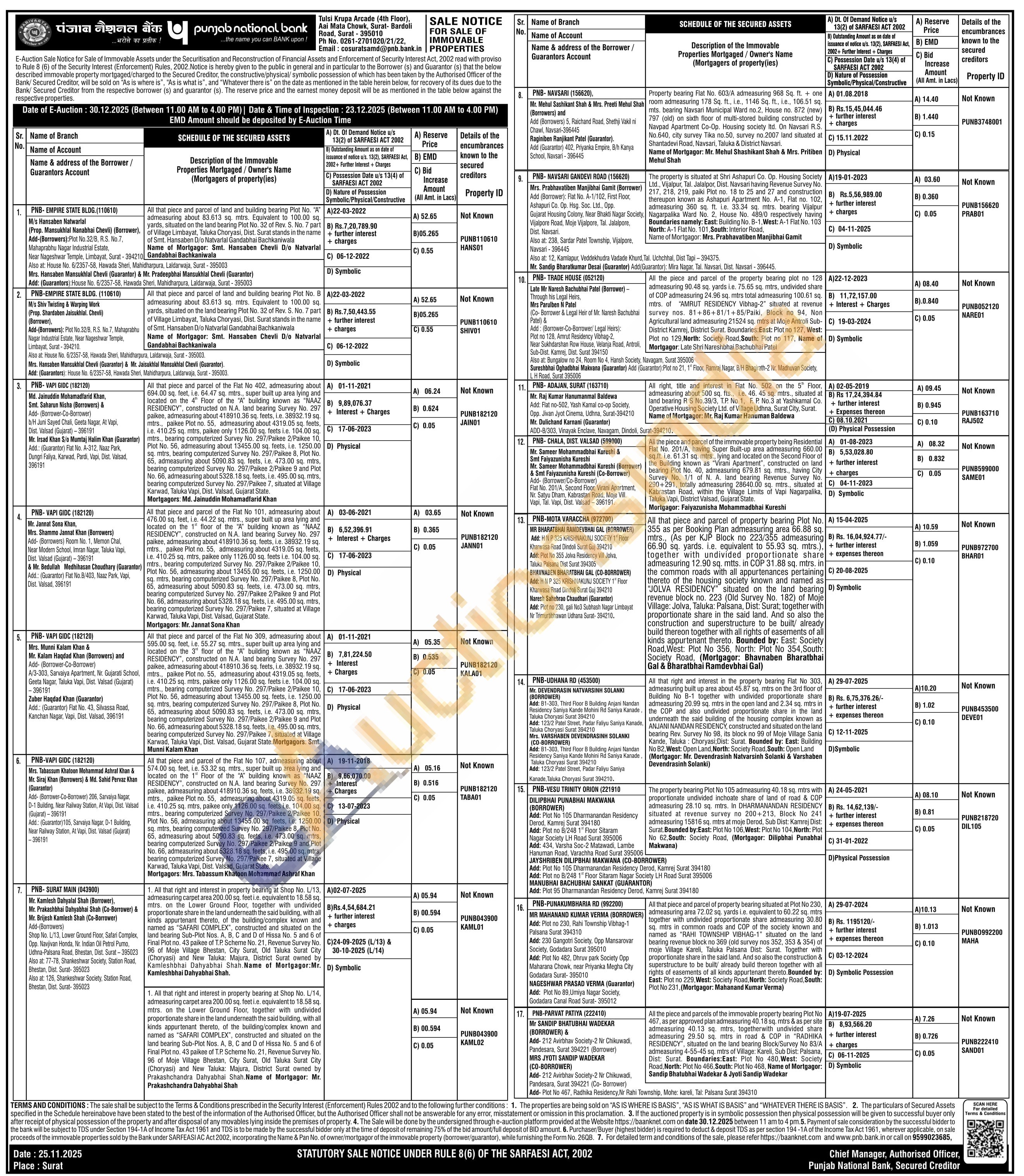 Contact Ph No. 0261-2701020/21/22, Email: cosuratsamd@pnb.bank.in