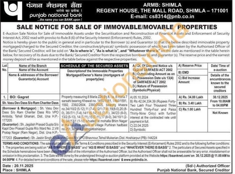 Property measuring 8 Marla 224 Sq ft. i.e. 8 marla 7 sarsahi bearing Khewat no. 1458/1581, 1466/1591.1592. 2392/2604, 2393/2805, bearing khasra no.34//10/2 (5-12),11 (7-4), 12/1 (7-4), 19(8-0),20 (8-0), 35/7/1 (7-4), 14/1 (5-14), 15 (7-11), 34/23 (8-0), 13/2 (5-13), 14 (7-11),15(7-11),17(8-0), 34/10/1 (2-0), 34/13/1 (1-18) situated at mohalla Bhim Nagar in the revenue estate of Village Purhiran hadbast no.251, Tehsil & District Hoshiarpur.