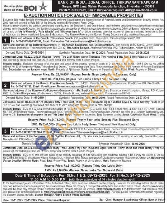 Property Details: EQM of 1.92 Ares of land with building at Re Sy No. 136-12-1-1 0.93 Ares), 136/12-3-1-1 0.28 Ares, & 136/11-3-2 (0.71 Ares) in Block No. 14 of Ulyazhathura Village, Thiruvananthapuram Tauk, Pothencode Sub District, Thiruvananthapuram District in the name of Mr. Sreejith Satheesan & Mrs. Dhanya DS. Boundaries of property (as per Title Deed) North: Property of Augustine. East: Marumun Vasthu, South: Corporation Road, West: Thodu