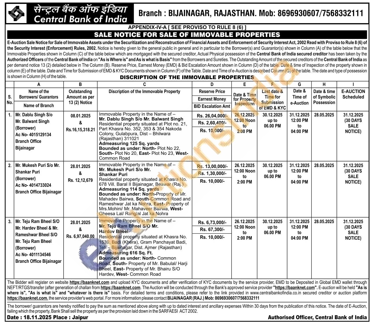 Immovable Property in the Name of -Mr. Teju Ram Bheel S/O Mr. Hardev Bheel Residential property situated at Khasra No. 1539, Badi (Khera), Gram Panchayat Badi, Teh-Bijainagar, Dist. Ajmer (Rajasthan) Admeasuring 616 Sq. Ft. Bounded as under: North-Common Road, South- Property of Mr. Babulal/ Harji Bheel, East-Property of Mr. Bhairu S/O Hardev, West-Common Road