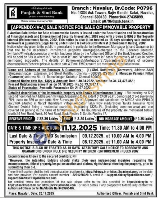 Flat bearing no S-2 second floor, Plot no: 4 Mahalakshmi Nagar, Measuring to the extent of 2400 Sq.Ft., comprised of old survey no 75/1, patta no 569 as per patta New Survey no 75/14, Approved and sanctioned by MMDA vide PPD/LO no.31/94 situated at No.93 Thandalam Village Ambattur Taluk Now maduravoyal Taluka Tiruvallur Now Chennai District Being a residential apartment measuring 732Sq.Ft., (including common area) and one covered car parking in the name of Mr.Kathiravan K. The boundaries of the property are mentioned below: North: 16 Feet Road, West, 30 Feet Road, East: Plot No 5, South: Plot No 17.