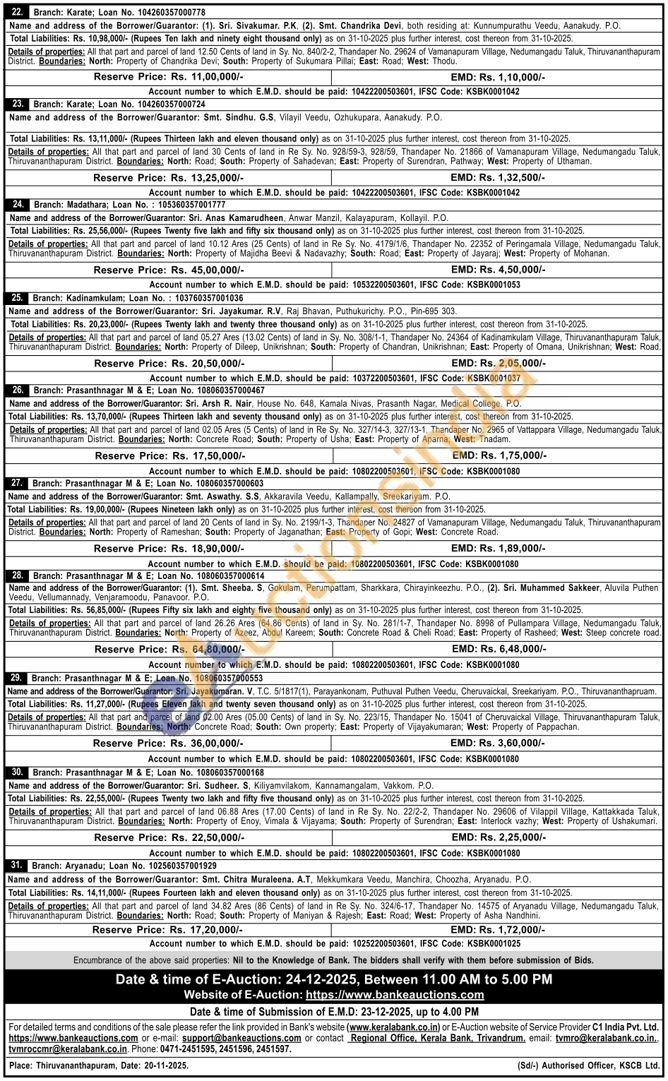 • Auction Start Date :  24-12-2025 11:00 AM