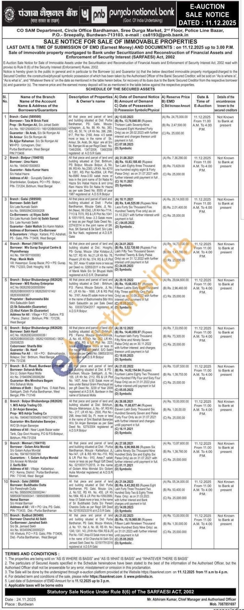 Mr. Abhiram Kumar Authorised Officer Mobile No : 7087851697