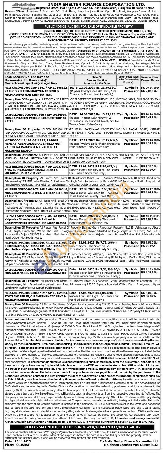ALL PIECES AND PARCEL OF PROPERTY BEARING REVENUE SURVEY NO.920/1, SUB PLOT NO.9/A-OF WHICH AREA ADMEASRUING 67.50 SQ.MTRS IN THE SCHEME KNOWN AS UMIYA PARK BEHIND SADHANA SCHOOL, HALVAD ROAD, DHRANGADHRA, SURENDRANAGAR, GUJARAT-363310 BOUNDARY: EAST-7.50 MTRS WIDE ROAD, WEST REVENUE SURVEY NO.919 PAIKEE NORTH: PLOT NO.08 SOUTH-SUB PLOT NO.9/B