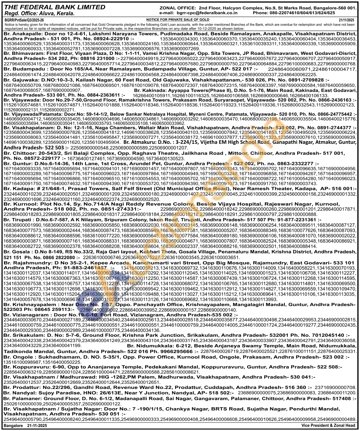 Federal Bank Gold Auctions Auction in Visakhapatnam