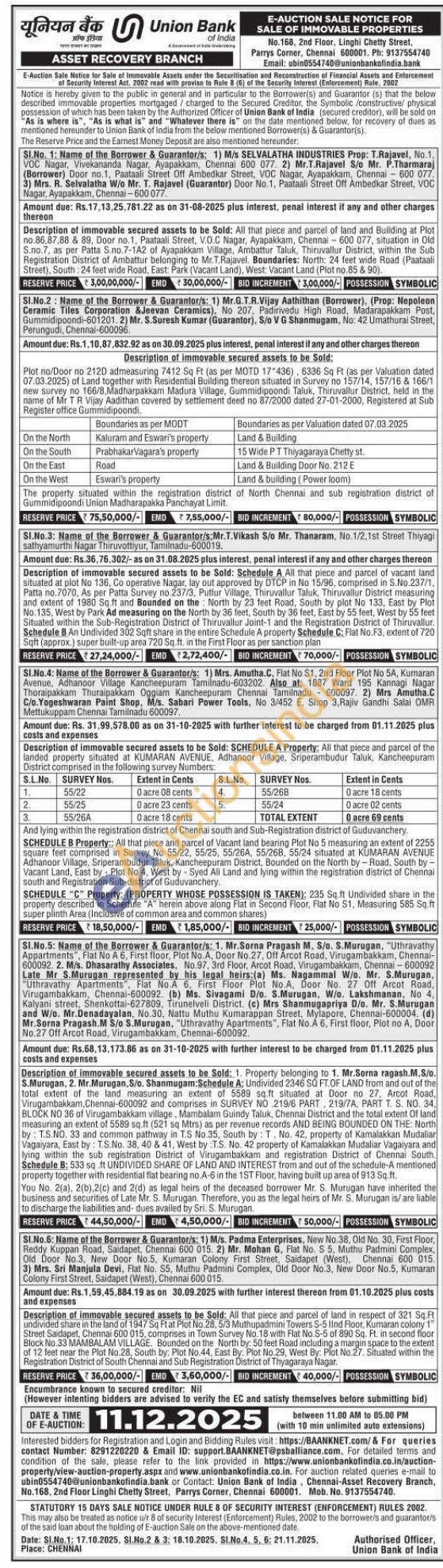1)All that piece and parcel of land and Building at Plot no.86,87,88 & 89, Door no.1, Paataali Street, V.O.C Nagar, Ayapakkam, Chennai-600 077, situation in Old S.no.7, as per Patta S.no.7-1A2 of Ayapakkam Village, Ambattur Taluk, Thiruvallur District, within the Sub Registration District of Ambattur belonging to Mr.T.Rajavel. Boundaries: North: 24 feet wide Road (Paataali Street), South: 24 feet wide Road, East: Park (Vacant Land), West: Vacant Land (Plot no.85 & 90).
