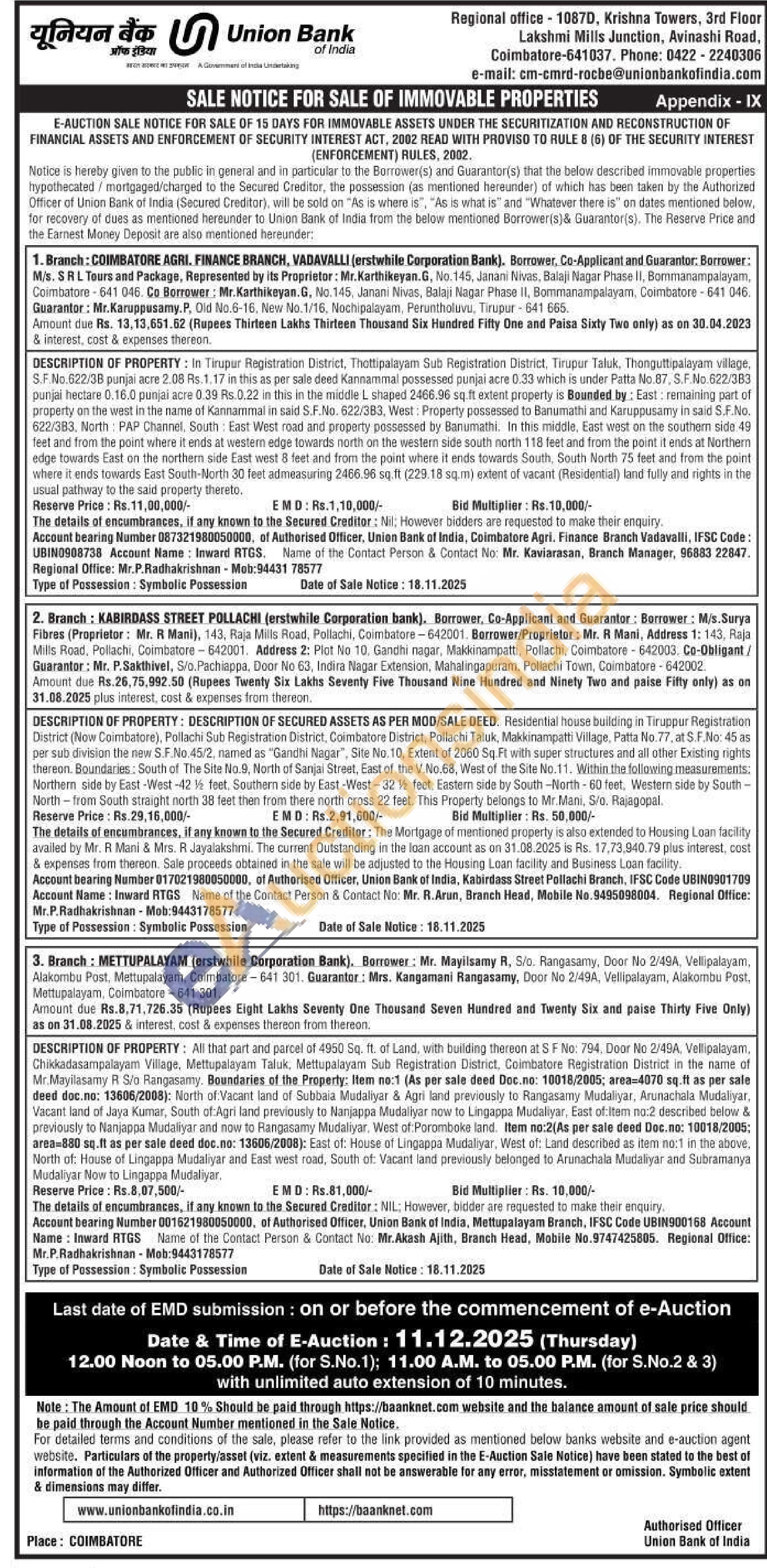Contact Person & Contact No: Mr.Akash Ajith, Branch Head, Mobile No.9747425805. Regional Office: Mr.P.Radhakrishnan Mob:9443178577