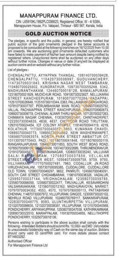 Manappuram Finance Ltd Gold Auctions Auction in Chengalpattu