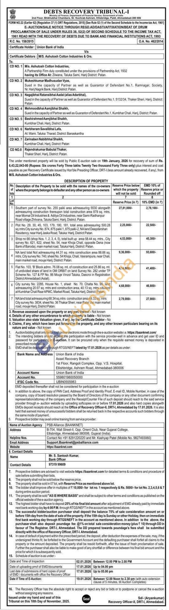 Southern part of survey No. 255 paiki area admeasuring 5530 alongwith admeasuring construction thereupon total construction area 879 sq. mtrs. near Momai Oil Industries & Aditya Oil Industries, near Sami-Radhanpur Road village Zhilvana, Taluka Sami, Harij. District. Patan