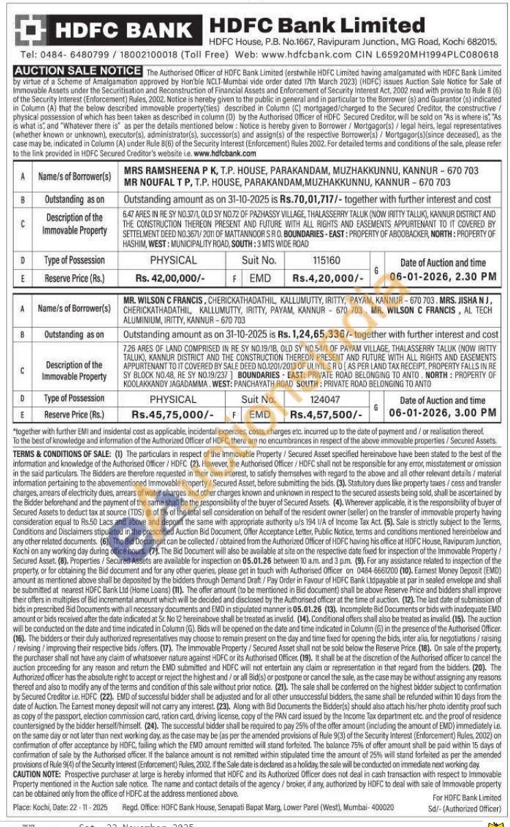 6.47 ARES IN RE SY NO.37/1, OLD SY NO.72 OF PAZHASSY VILLAGE, THALASSERRY TALUK (NOW IRITTY TALUK), KANNUR DISTRICT AND THE CONSTRUCTION THEREON PRESENT AND FUTURE WITH ALL RIGHTS AND EASEMENTS APPURTENANT TO IT COVERED BY SETTELMENT DEED NO.3671/2011 OF MATTANNOOR SRO. BOUNDARIES-EAST: PROPERTY OF ABOOBACKER, NORTH: PROPERTY OF HASHIM, WEST: MUNICIPALITY ROAD, SOUTH: 3 MTS WIDE ROAD