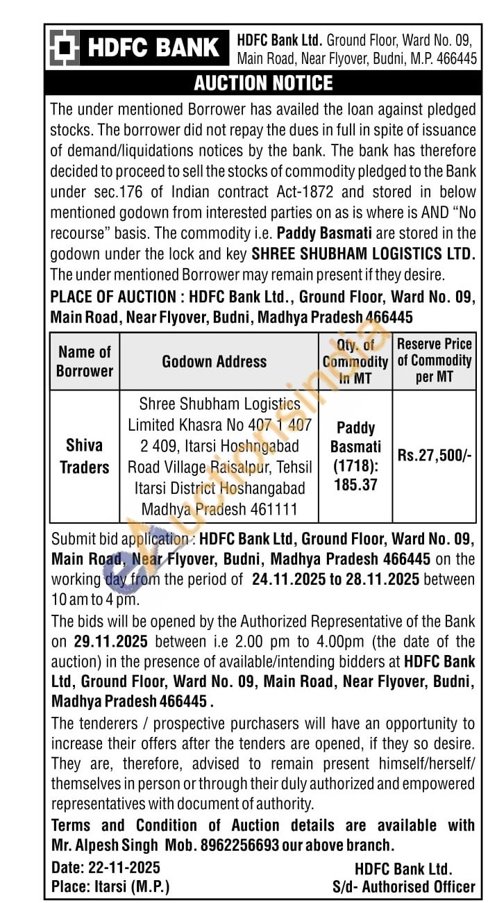 Shree Shubham Logistics Limited Khasra No 407 1 407 2 409, Itarsi Hoshngabad Road Village Raisalpur, Tehsil Itarsi District Hoshangabad Madhya Pradesh 461111