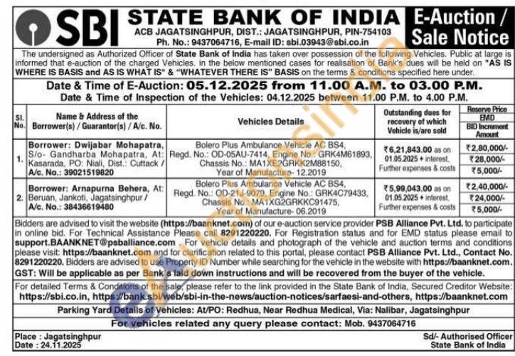 Bolero Plus Ambulance Vehicle AC BS4, Regd. No.: OD-21J-9079, Engine No.: GRK4C79433, Chassis No.: MA1XG2GRKKC91475, Year of Manufacture-06.2019